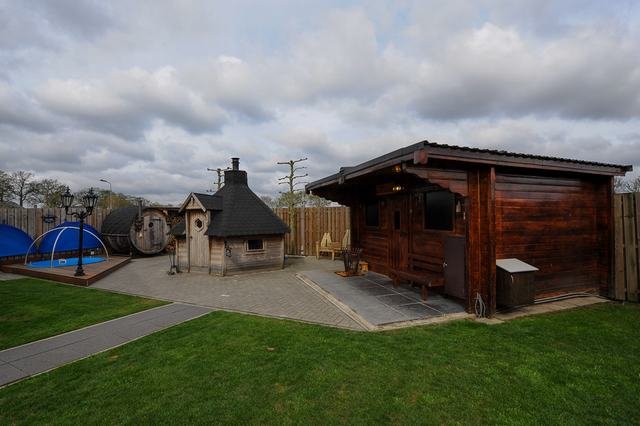 Vanaf juli 2013 is er een zesde (hele grote) opgietsauna van ruwe boomstammen bij gekomen. Hierin vinden de opgietingen plaats en is plaats voor maar liefst 78 personen ( en 2 VIP’s) dus U kunt altijd mee doen.